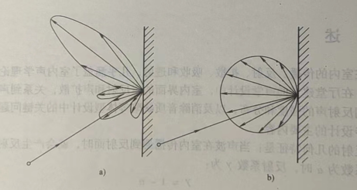 如果反射面的表面是無規(guī)則的起伏,并且起伏的尺度和入射聲波波長相當,則上述的幾何反射定律就不再適用了,反射聲能被分散到更寬的角度中,這種反射稱為擴散反射,簡稱“散射”,或更準確地稱之為“部分擴散反射”。...