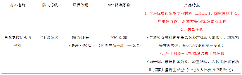 三聚氰胺防火吸音棉——材料性能一覽表